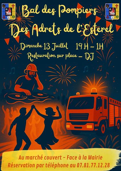 L'amicale des Pompiers des Adrets-de-l'Estérel organise son traditionnel bal des pompiers au centre village, sur la place du jeu de boules.