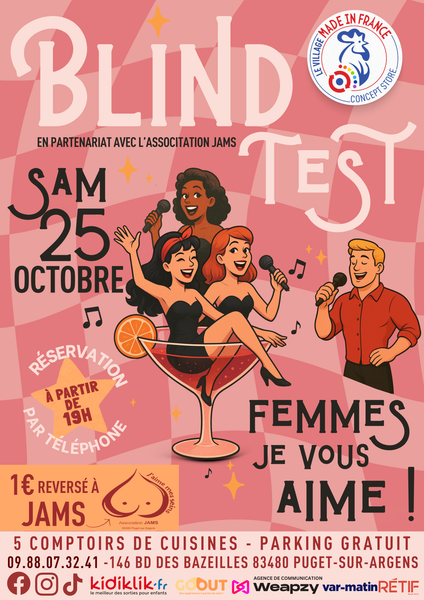 Blind Test – Spécial Octobre Rose le samedi 25 octobre 2025 au Village Made In France !