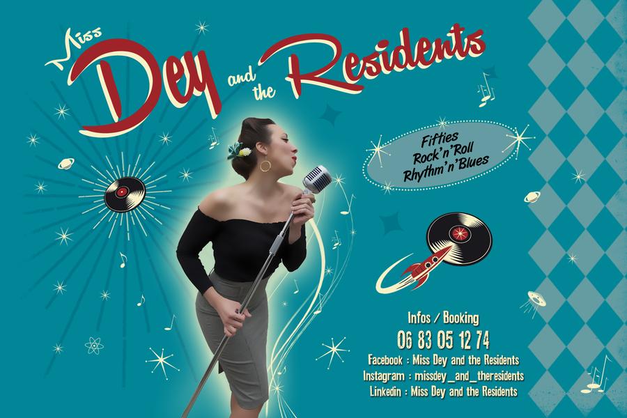 Miss DEY, c’est aussi un concept inédit : 80 % du répertoire est féminin ! composé de chansons des grandes chanteuses des années 50 : de Janis Martin à Wanda Jackson, d’Ella Mae Morse à Laura Lee Perkins, de Brenda Lee à Patsy Cline, d’Etta James à Tina Turner… Et 20% du répertoire est consacré aux "Grands Standards” du Rock'n'Roll et du Rhythm'n'Blues, ainsi qu’aux 20 « compositions originales » du groupe. Une heure trente en immersion totale dans ce répertoire de pure Rock'n'Roll, teinté de Rockabilly et fortement saupoudré de Rhythm'n'Blues !
