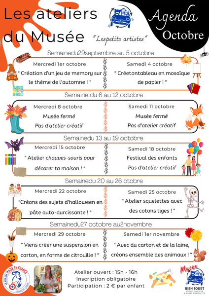 Ateliers tous les mercredis et samedis de 15h à 16h